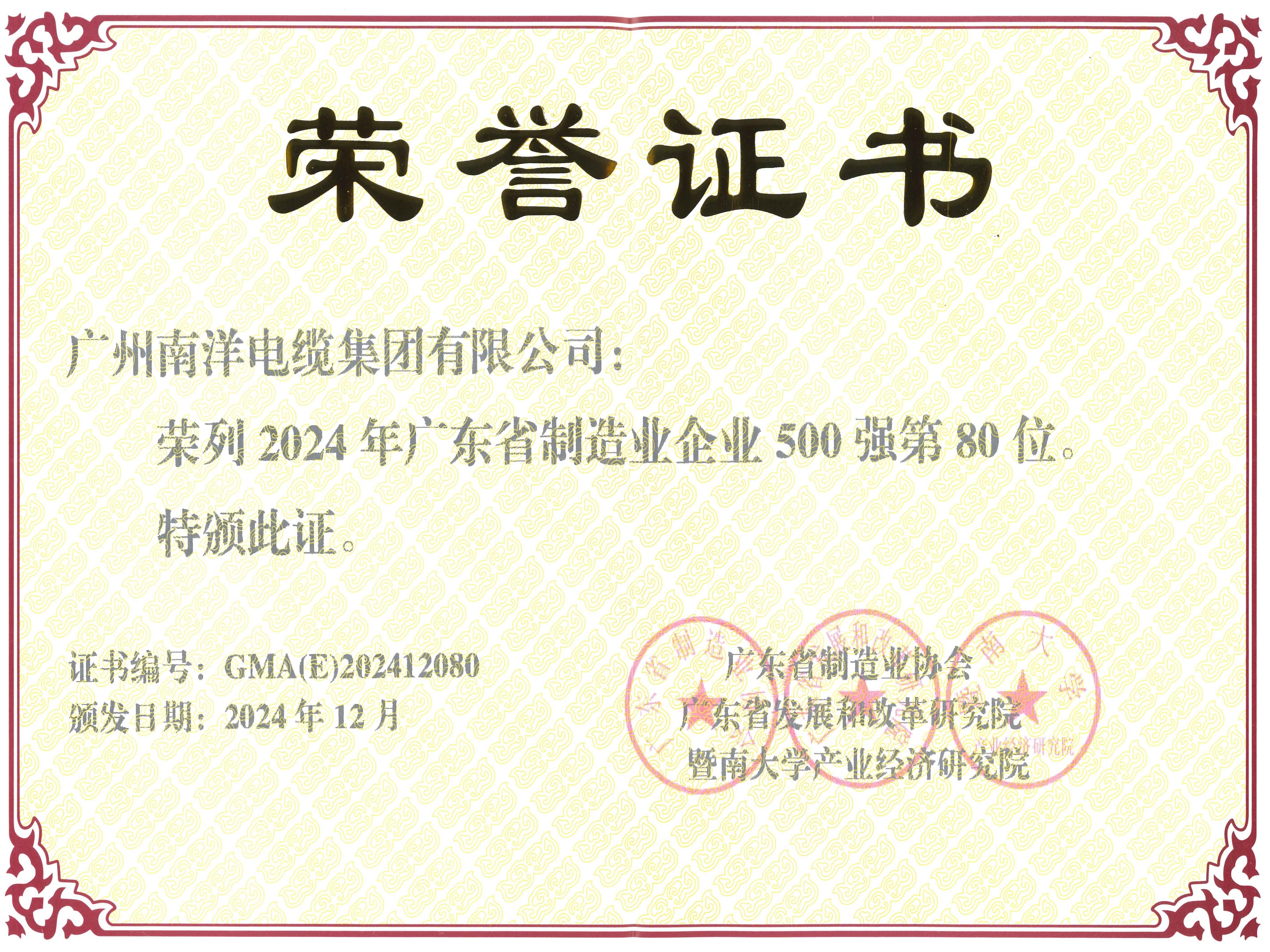 • >喜訊-廣州南洋電纜集團(tuán)有限公司榮獲2025年廣東省制造業(yè)企業(yè)5... 2025.11.03