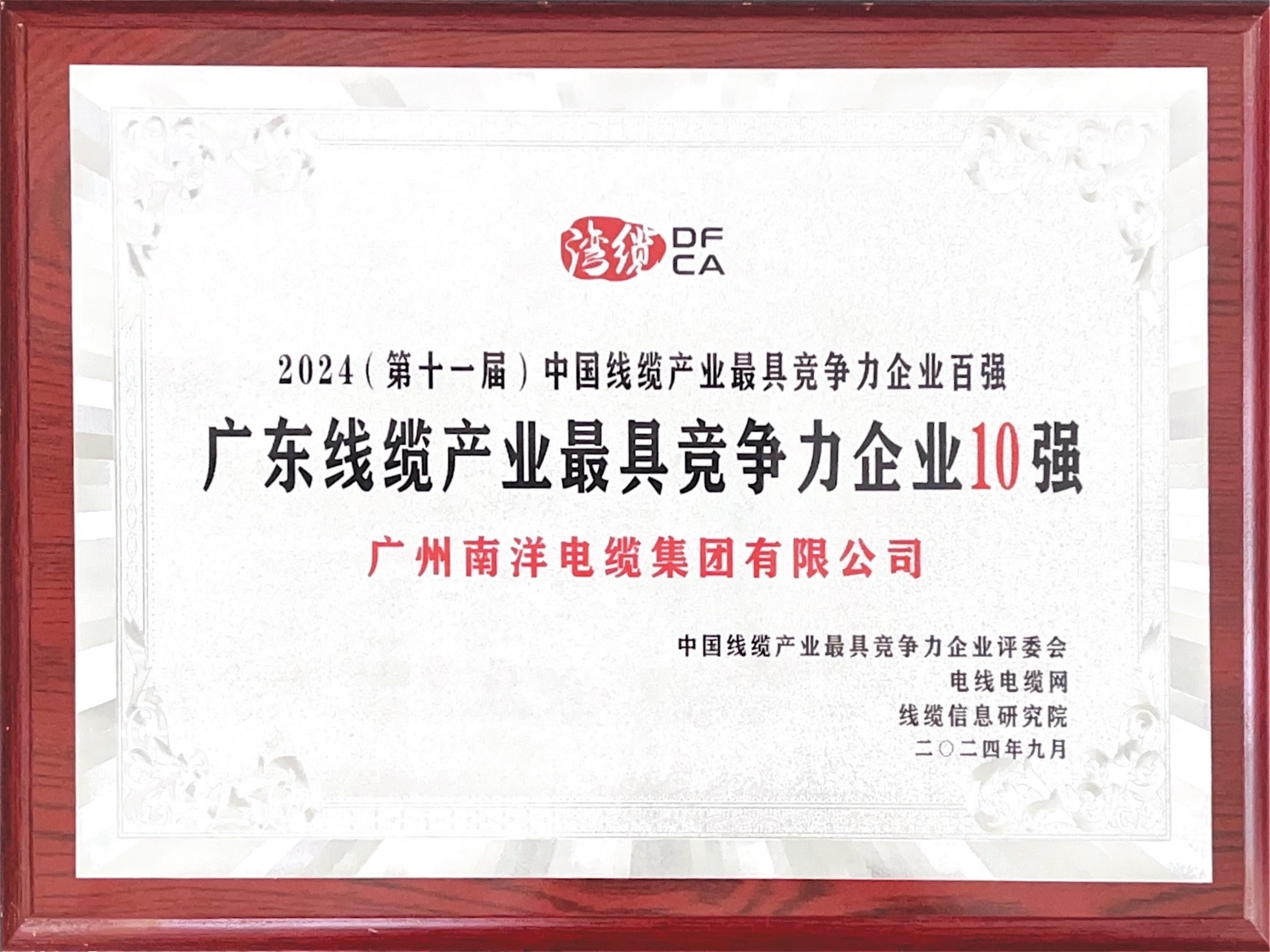 • 2024年度廣東線纜行業(yè)最具競(jìng)爭(zhēng)力企業(yè)10強(qiáng)第一名